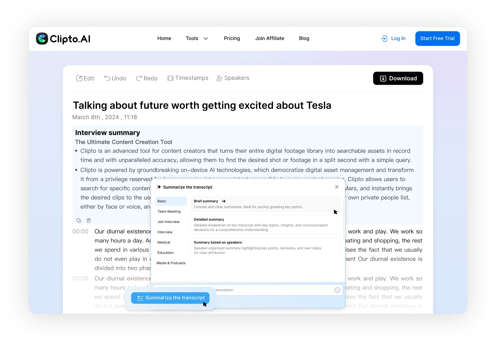 Allt frá vitnisburðum og dómsyfirheyrslum til lögfræðiviðtala og funda, Clipto.AI hjálpar lögfræðingum að umrita hljóð og myndband í nákvæman texta með tímastimplum, auðkenningu hátalara og lykilinnsýn, sem tryggir að hvert orð sé tekið á öruggan hátt og í trúnaði.