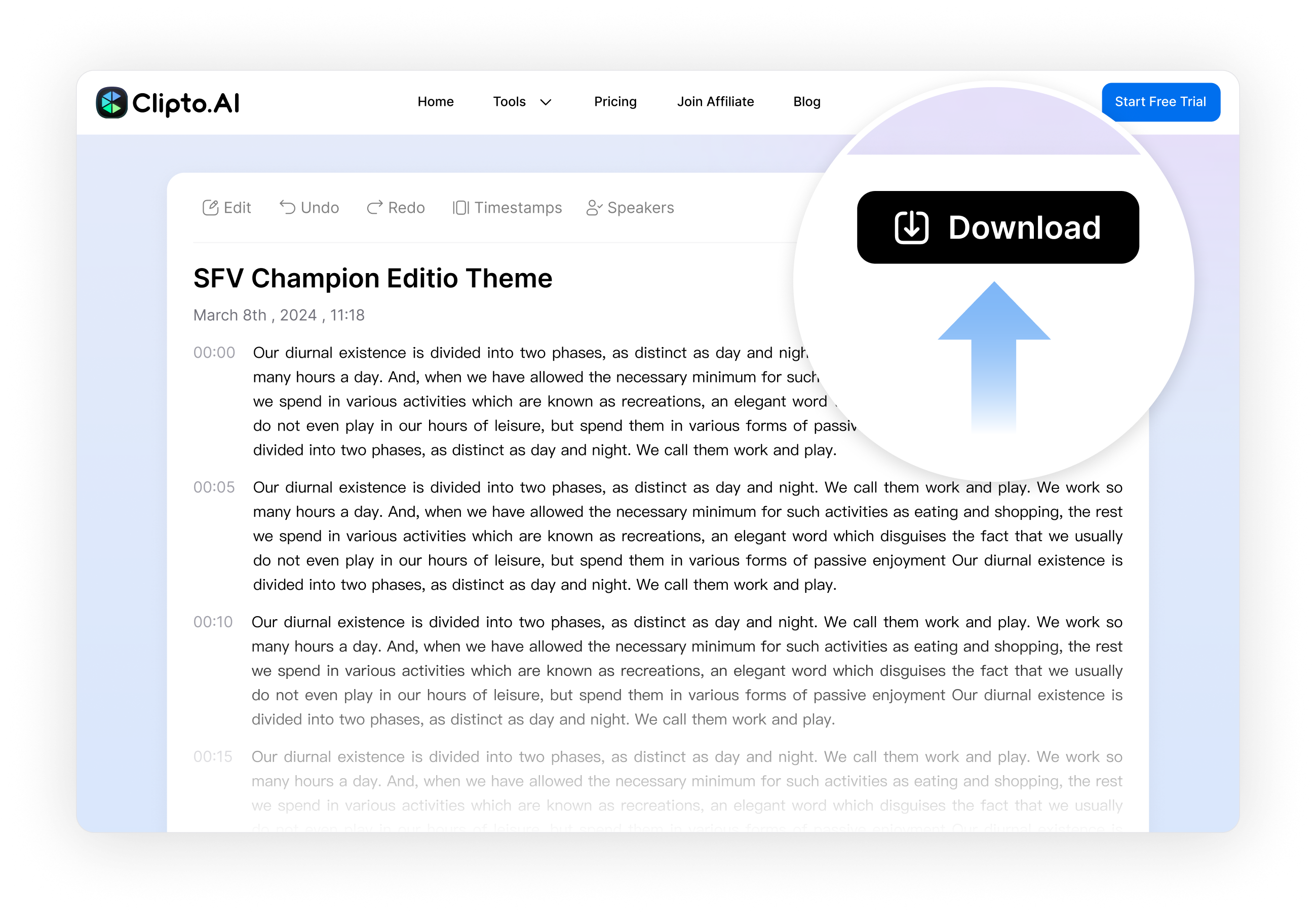 Upload or paste a video link and let Clipto convert every word into clean text. With high-accuracy transcription, translation, speaker identification and timestamps built in, you get ready-to-use content for notes, summaries, blogs or documentation instantly.